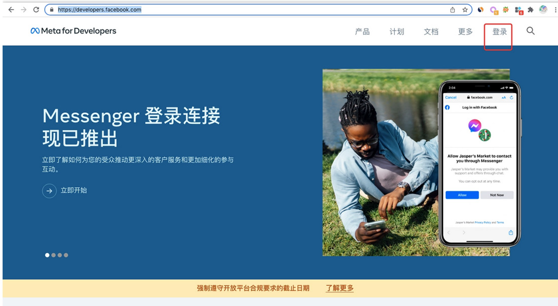 首先,我們需要登錄Facebook開發(fā)者網址:https://developers.facebook.com/。這個網址是Facebook為開發(fā)者提供的一個平臺,在這里我們可以創(chuàng)建、管理和發(fā)布自己的應用。(請看下圖)