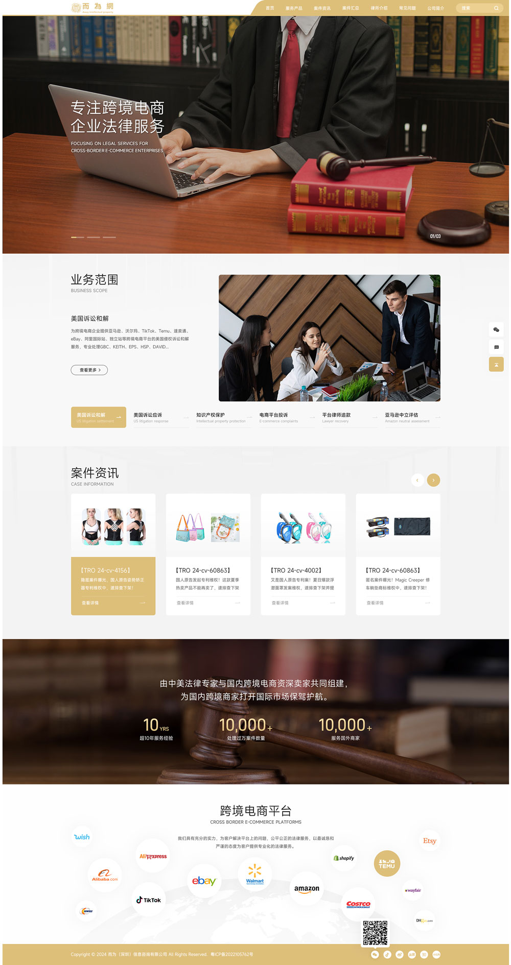 而為網(wǎng)由美國芝加哥知名律師事務(wù)所的法律專家與國內(nèi)涉外法律專家、跨境電商資深賣家共同組建。專業(yè)解決國內(nèi)跨境電商企業(yè)在國內(nèi)與美國的法律問題。為客戶提供訴訟和解、訴訟應(yīng)訴、知識(shí)產(chǎn)權(quán)保護(hù)、電商平臺(tái)投訴、亞馬遜中立評(píng)估、律師追款、常年法律顧問以及國內(nèi)民事訴訟等服務(wù)。國內(nèi)團(tuán)隊(duì)人數(shù)20人,主要負(fù)責(zé)推廣、業(yè)務(wù)接待與業(yè)...