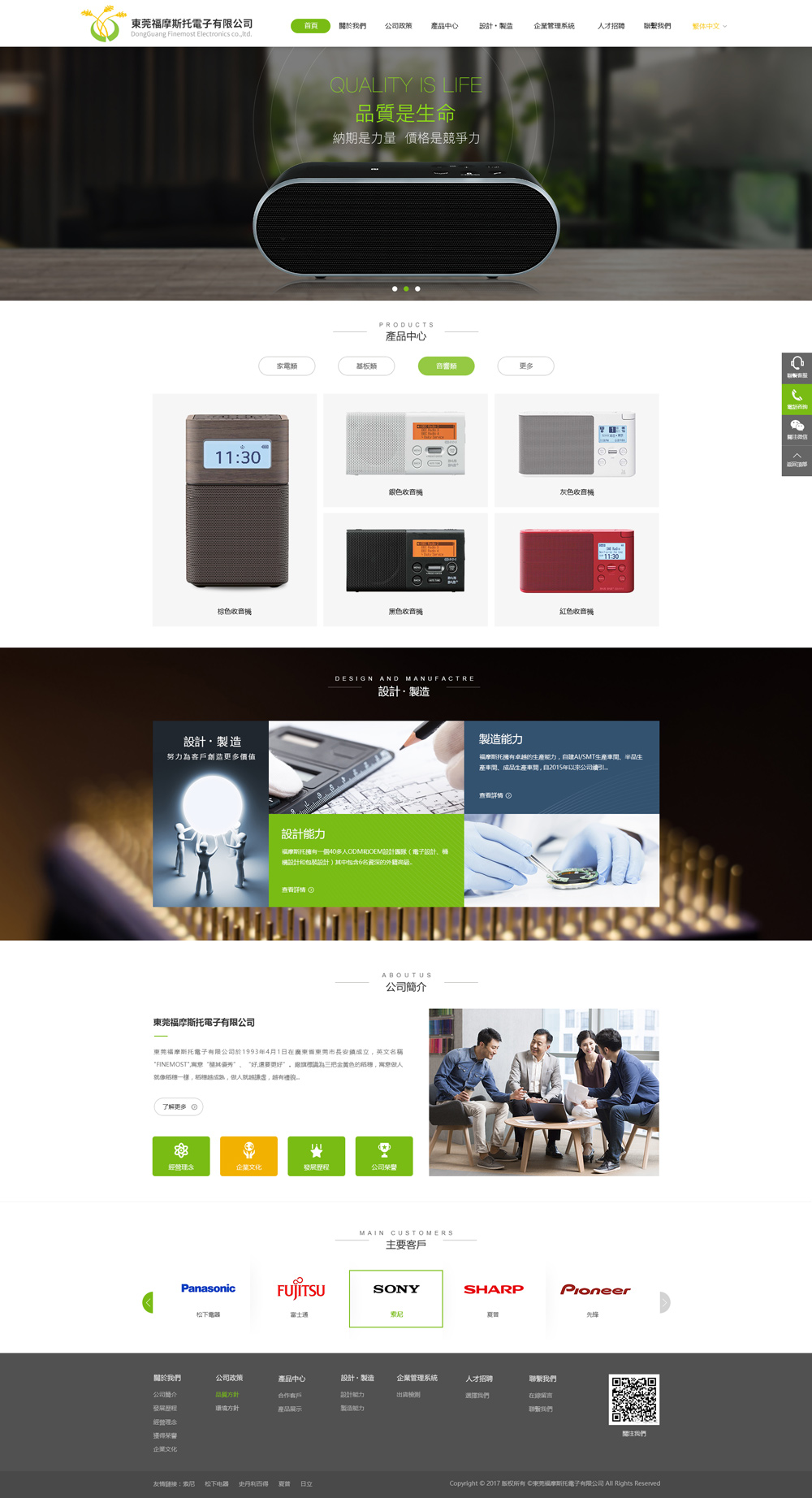 東莞福摩斯托電子有限公司于1993年4月1日在廣東省東莞市長安鎮(zhèn)成立,英文名稱“FINEMOST”,寓意“極其優(yōu)秀”、“好,還要更好”。我公司主要為COMTRAD(港卓)、CYBERNET、FUJITSU GENERAL(富士通將軍)、鴻海科技集團(tuán)、HITACHI(日立)、PANASONIC(松下)、PIONEER(先鋒)、SONY(索尼)、SHARP(夏普)、Stanley Black & Decker(史丹利百得)等國際知名公司生產(chǎn)制造音響、收音機(jī)、多媒體喇叭、藍(lán)牙音箱、空氣清凈機(jī)、空調(diào)空清基板、洗衣機(jī)基板、LED照明燈、醫(yī)療專用平板計算機(jī)、工業(yè)電腦等產(chǎn)品,除生產(chǎn)客戶的產(chǎn)品以外,還積極開發(fā)自己的產(chǎn)品,創(chuàng)建自己的品牌。