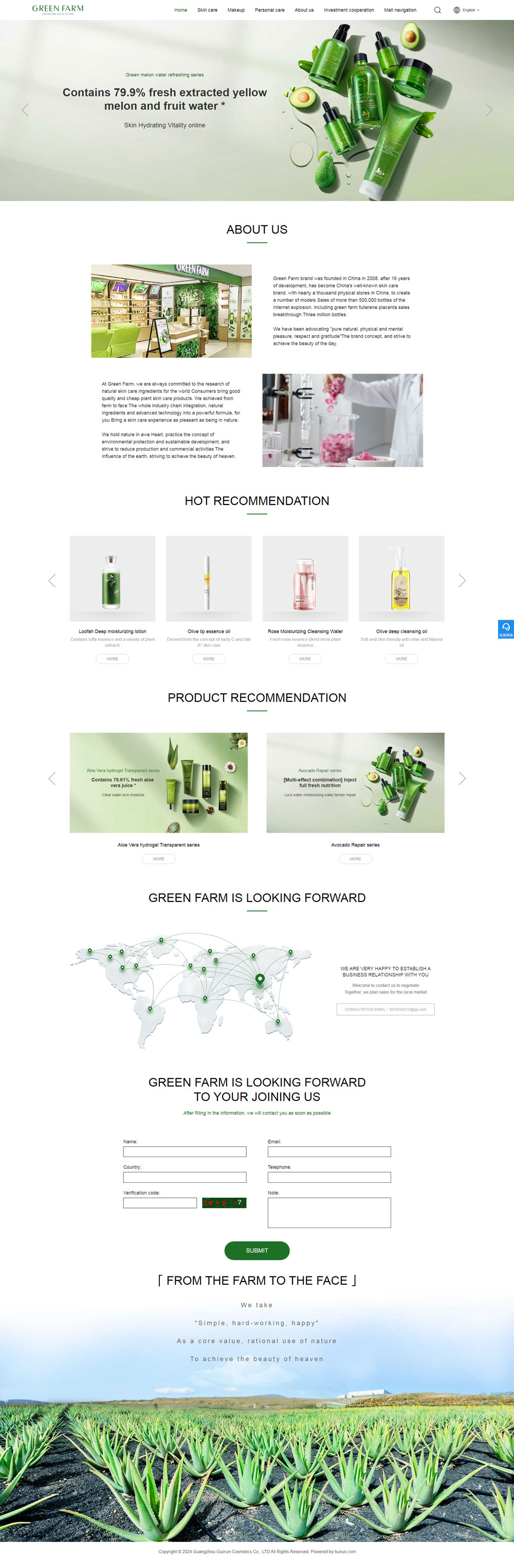 綠色農(nóng)場品牌創(chuàng)立于2008年,產(chǎn)品涵蓋護(hù)膚品、彩妝品、面膜及個(gè)人護(hù)理品。自品牌創(chuàng)立伊始,綠色農(nóng)場便一直倡導(dǎo)“純凈天然、身心愉悅、尊重感恩”的品牌理念,研發(fā)了大量廣受消費(fèi)者喜愛的產(chǎn)品。