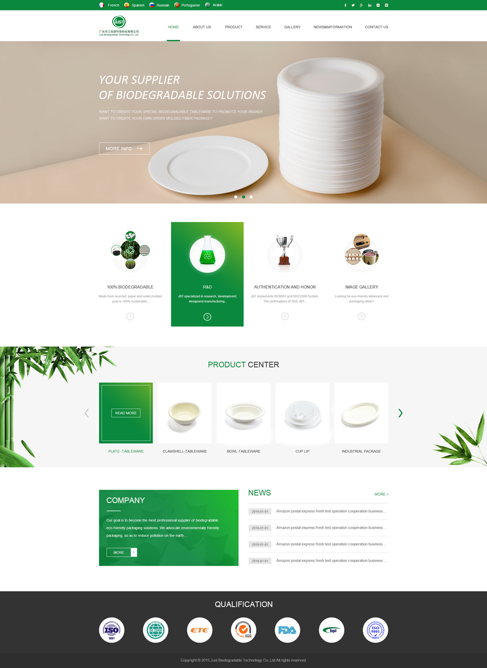 Focused on the research, development, design, manufacturing and marketing of the eco-friendly tableware and packages, Just Biodegeradable Technology Co., Ltd. is one of the largest Chinese professional manufacturers of tableware and packagesmade of the environmentally friendlyplant fiber (pulp).