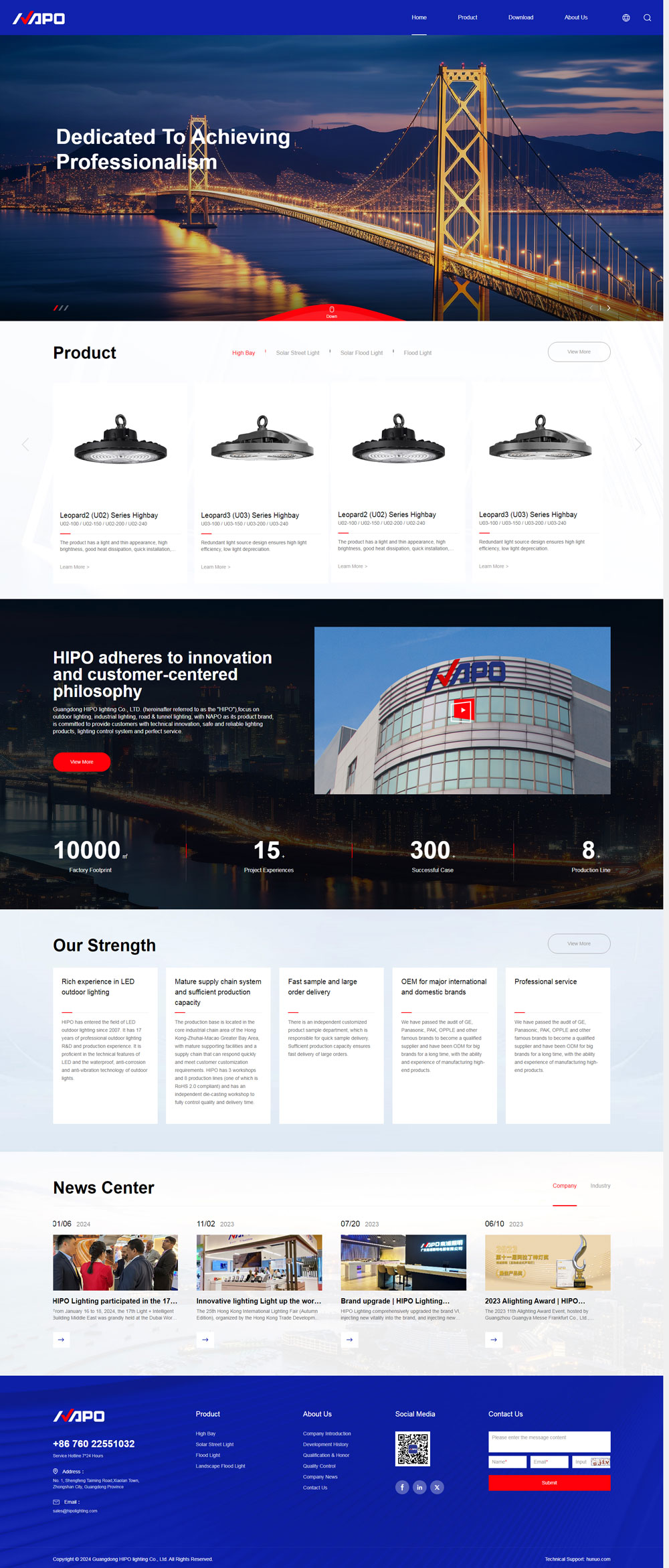 HIPO in terms of landscape lighting, in addition to wall washer, dots and pixels, linear light, we have also offered complementary products, such as window-frame light, emulational reed light, to meet customers’ need. In terms of functional lighting, industrial lighting road & tunnels lighting, low...