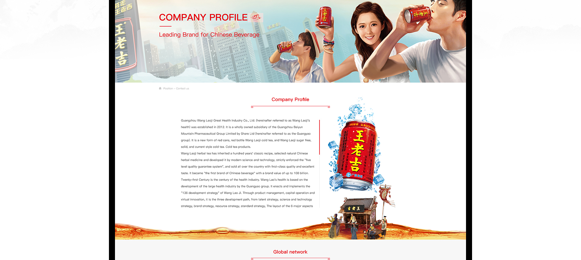 Found in 2012, Guangzhou Wanglaoji Great Health Industry Company Limited (Wanglaoji Great Health) is a wholly-owned subsidiary of Guangzhou Baiyunshan Pharmaceutical Group Co., Ltd. (Guangzhou Pharmaceutical Group). It is engaged in the red-canned and red bottled Wanglaoji herbal tea, as well as Wan...