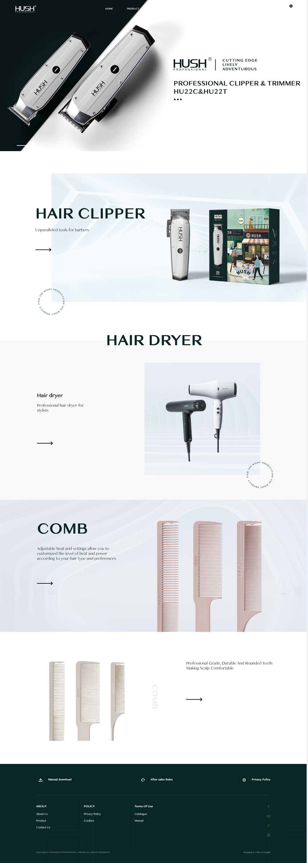 HUSH, is a hairstyling product brand integrating research & development, production along with sales. Product categories include hair dryers, hair clippers & trimmers, flat irons, curling irons and various kinds of hairdressing accessories.