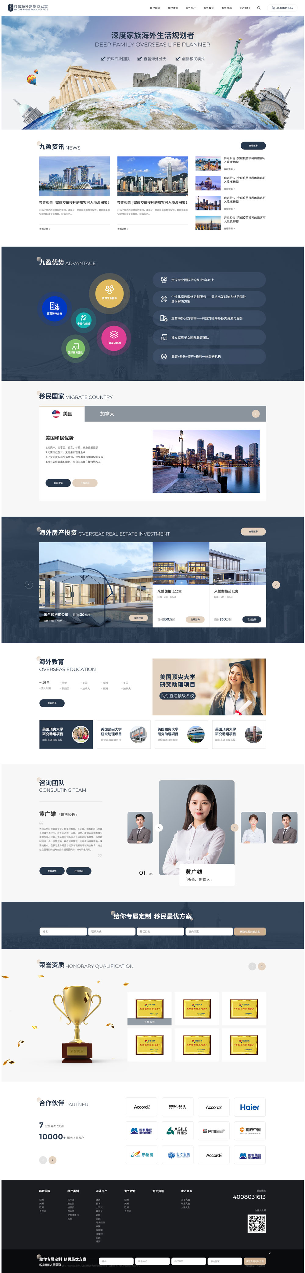 九盈海外家族辦公室致力于為需要移民、留學(xué)、海外投資、商業(yè)拓展的家庭和個人提供全方位的海外生活服務(wù)。在深圳、香港、新加坡等地都設(shè)有辦事機(jī)構(gòu),在希臘、西班牙、英國等地有資深戰(zhàn)略合作機(jī)構(gòu),依托于團(tuán)隊資深的海外服務(wù)經(jīng)驗以及豐富的海外資源,為客人提供個性化,縱深的海外綜合服務(wù),我們?yōu)槊恳粋€家庭提供定制的解決方案,杜絕流水線式的淺層服務(wù)產(chǎn)品。