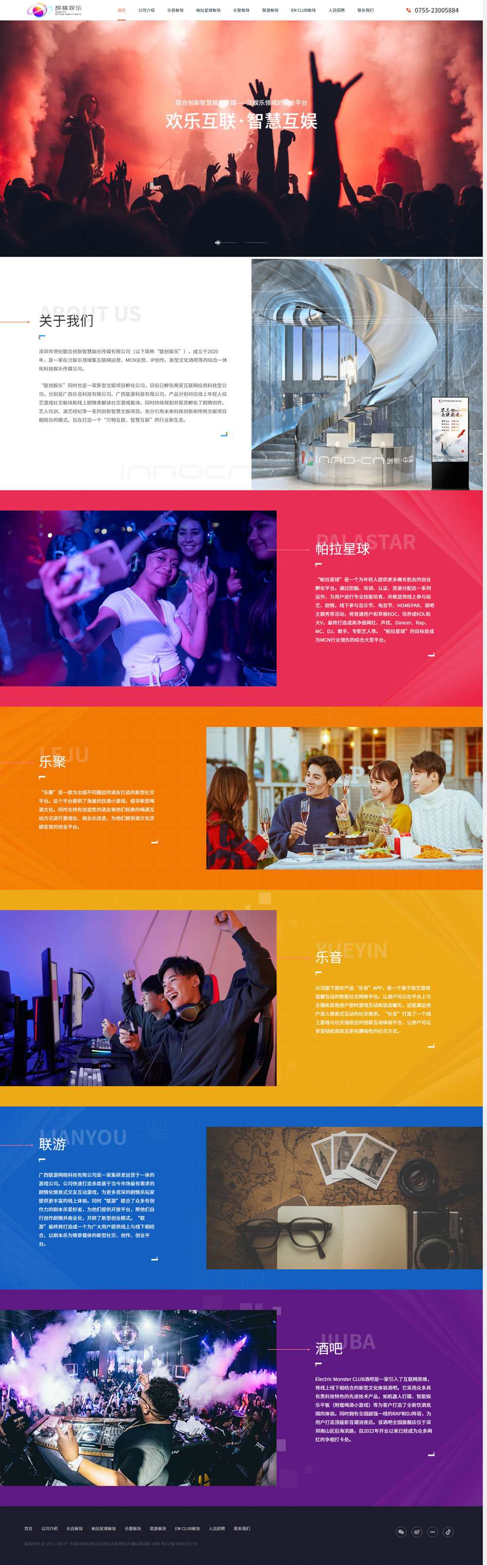 深圳市世紀(jì)聯(lián)合創(chuàng)新智慧娛樂傳媒有限公司(以下簡稱“聯(lián)創(chuàng)娛樂”),成立于2020年,是一家在泛娛樂領(lǐng)域集互聯(lián)網(wǎng)運(yùn)營、MCN運(yùn)營、IP創(chuàng)作、新型文化酒吧等的綜合一體化科技娛樂傳媒公司。 “聯(lián)創(chuàng)娛樂”同時(shí)也是一家新型文娛項(xiàng)目孵化公司,目前已孵化兩家互聯(lián)網(wǎng)應(yīng)用科技型公司,分別是廣西樂音科技有限公司、廣西聯(lián)游科技...