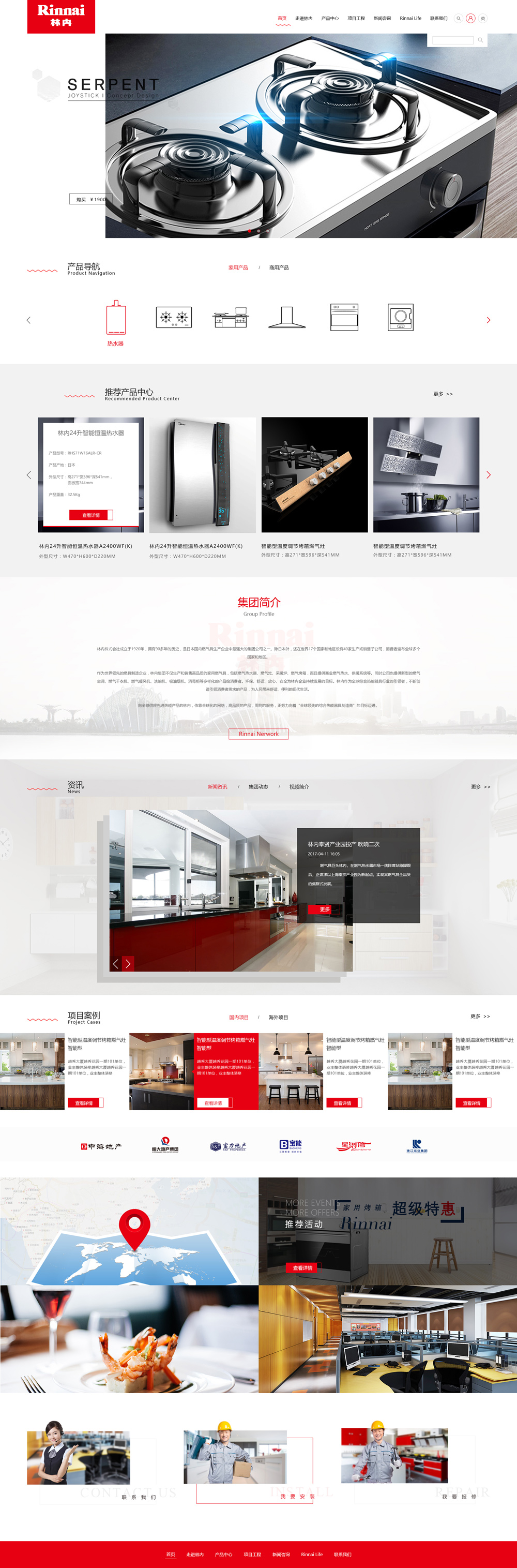 從1920年創(chuàng)業(yè)以來,林內(nèi)作為世界綜合熱能器具生產(chǎn)廠商,以通過熱能向社會(huì)提供舒適生活為企業(yè)使命,以「安全性」「舒適性」「環(huán)境性」為理念,向消費(fèi)者提供燃?xì)庠?、燃?xì)怙堨业葟N房設(shè)備,熱水器、開水器等熱水設(shè)備,燃?xì)獠膳癄t、紅外線取暖爐等空調(diào)設(shè)備,還有像洗碗機(jī)、干衣機(jī)等多樣化的熱能產(chǎn)品。