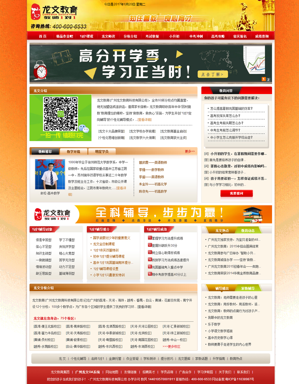 廣州龍文教育直屬龍文教育集團,已在廣州的荔灣、天河、海珠、越秀、番禺、白云、黃埔、花都、芳村、增城及東莞開設(shè)11個分校,54個教學點。為廣州各個區(qū)域的學生提供了優(yōu)良的學習環(huán)境和最好個性化輔導(dǎo)服務(wù)。廣州龍文教育匯聚了來自廣東省各市重點學校的特級教師80多名,其中畢業(yè)于重點師范大學的專職教師500余名,所有龍文教育教師都經(jīng)過嚴格篩選機制和專業(yè)個性化教學培訓(xùn),均有輔導(dǎo)學生單科進步30-100分的記錄。
