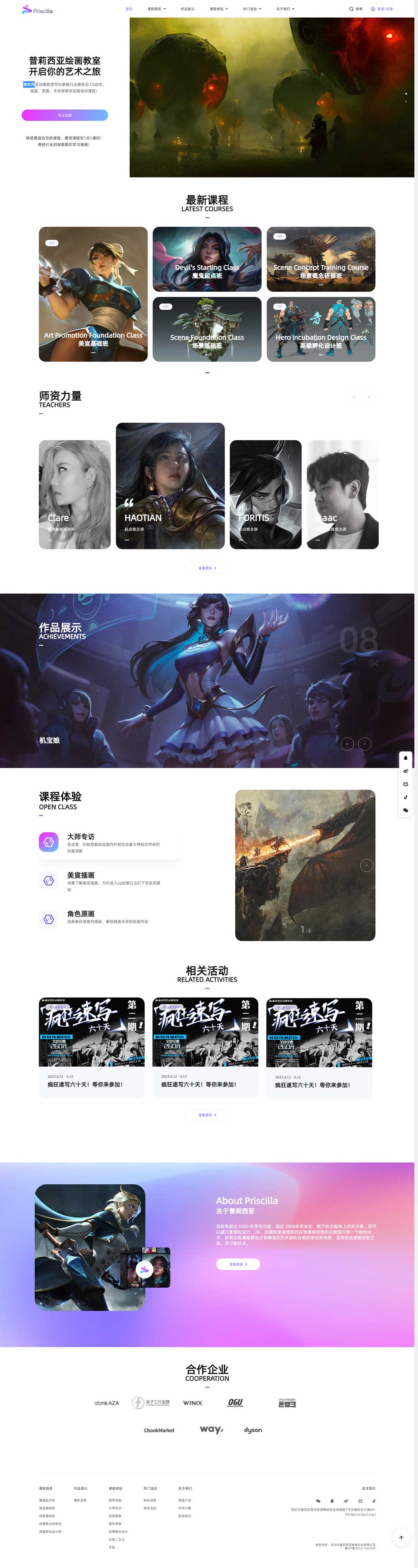 Priscilla普莉西亞是一個(gè)以先進(jìn)的西方藝術(shù)理念為基礎(chǔ)的新模式藝術(shù)工作室;它為世界知名藝術(shù)家提供了一個(gè)交流他們進(jìn)步思想的平臺(tái)。目前有超過(guò) 6000 名學(xué)生注冊(cè),超過(guò) 2000名畢業(yè)生,數(shù)萬(wàn)社交媒體上的關(guān)注者。您可以通過(guò)素描和設(shè)計(jì)、3D、動(dòng)畫(huà)和美宣插圖的在線課程將您的技能提升到一個(gè)新的水平,所有這些課程都由才華橫溢的藝...