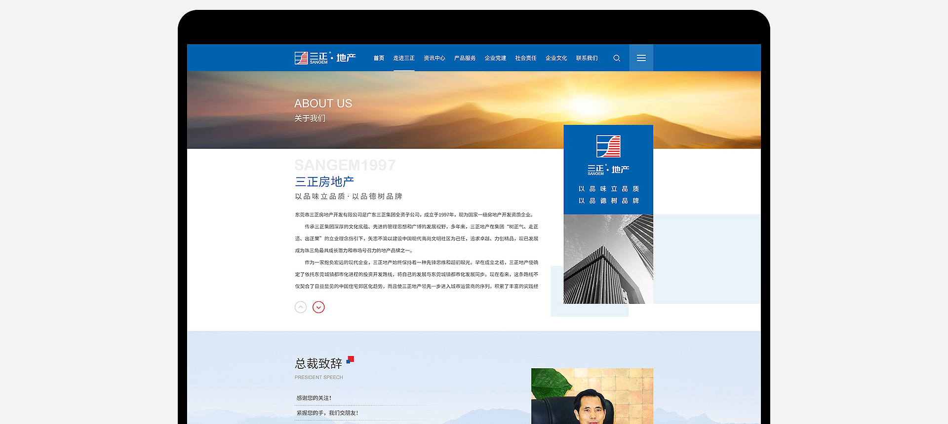 東莞市三正房地產(chǎn)開發(fā)有限公司是廣東三正集團(tuán)全資子公司,成立于1997年,現(xiàn)為國家一級房地產(chǎn)開發(fā)資質(zhì)企業(yè)。 傳承三正集團(tuán)深厚的文化底蘊(yùn)、先進(jìn)的管理思想和廣博的發(fā)展視野,多年來,三正地產(chǎn)在集團(tuán)“樹正氣、走正道、出正果”的立業(yè)理念指引下,矢志不渝以建設(shè)中國現(xiàn)代高尚文明社區(qū)為己任,追求卓越、力創(chuàng)精品,現(xiàn)已發(fā)展成...