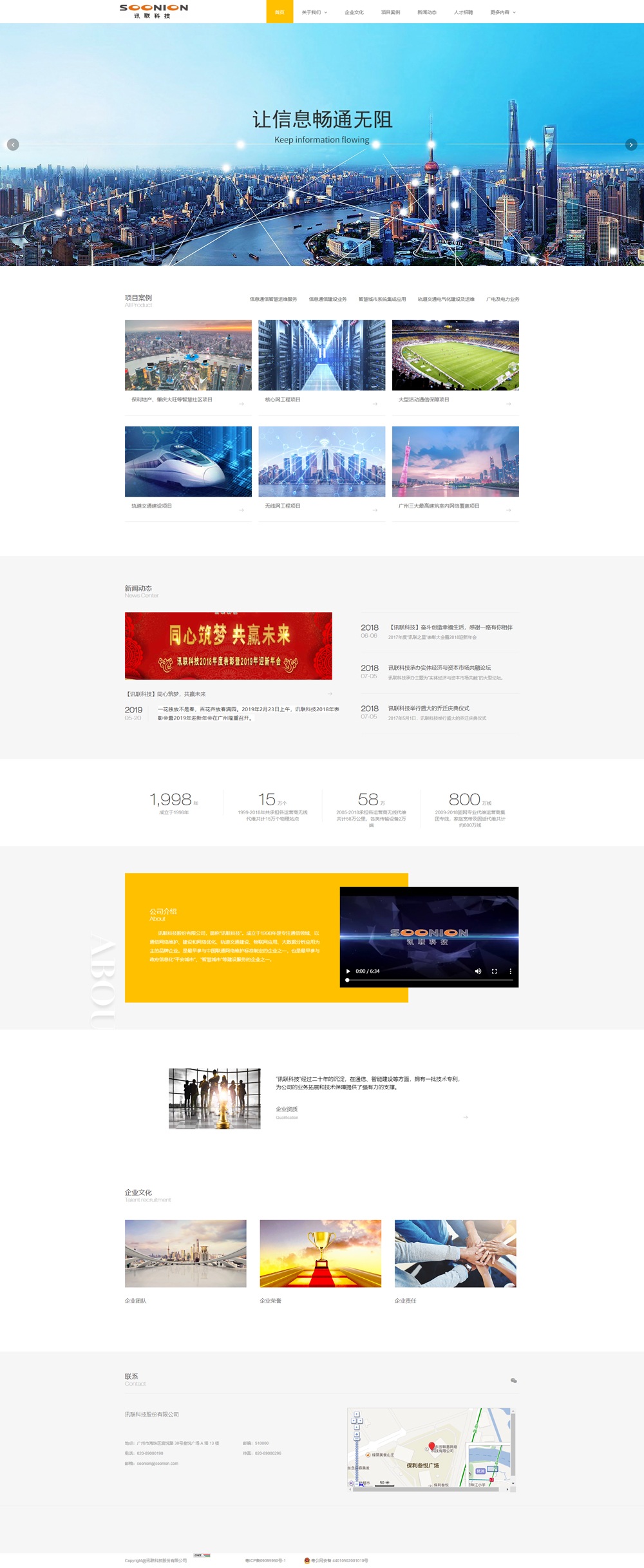 訊聯(lián)科技成立于1998年,成立以來(lái)先后與中國(guó)聯(lián)通、中國(guó)電信、中國(guó)移動(dòng)、中國(guó)鐵塔、華為、中興等知名企業(yè)達(dá)成長(zhǎng)期合作關(guān)系,是最早參與政府信息化“平安城市”、“智慧城市”建設(shè)與維護(hù)的企業(yè),目前已在全國(guó)8省30多個(gè)地市開展通信網(wǎng)絡(luò)建設(shè)和維護(hù)工作。