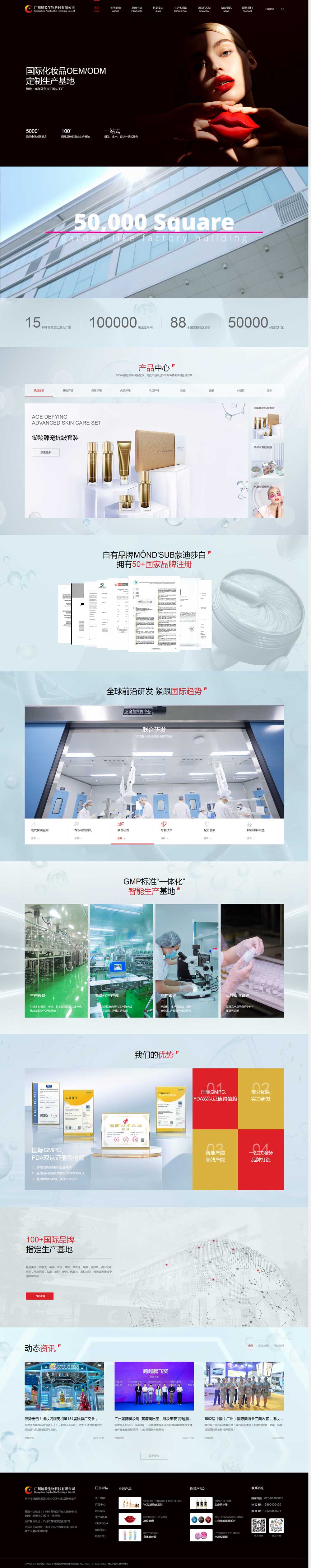 擁有50000平方米花園式廠區(qū),生產(chǎn)車間嚴(yán)格按照GMPC標(biāo)準(zhǔn)建設(shè),通過ISO9001質(zhì)量管理體系認(rèn)證、ISO22716化妝品良好生產(chǎn)規(guī)范認(rèn)證,建立標(biāo)準(zhǔn)化萬(wàn)級(jí)生物檢驗(yàn)中心,引進(jìn)國(guó)際領(lǐng)先的自動(dòng)化生產(chǎn)灌裝系統(tǒng),專業(yè)生產(chǎn)面膜/手足膜類、面部護(hù)膚、潔膚、身體護(hù)理、發(fā)用、嬰童、濕巾類等化妝品和個(gè)人護(hù)理產(chǎn)品。
