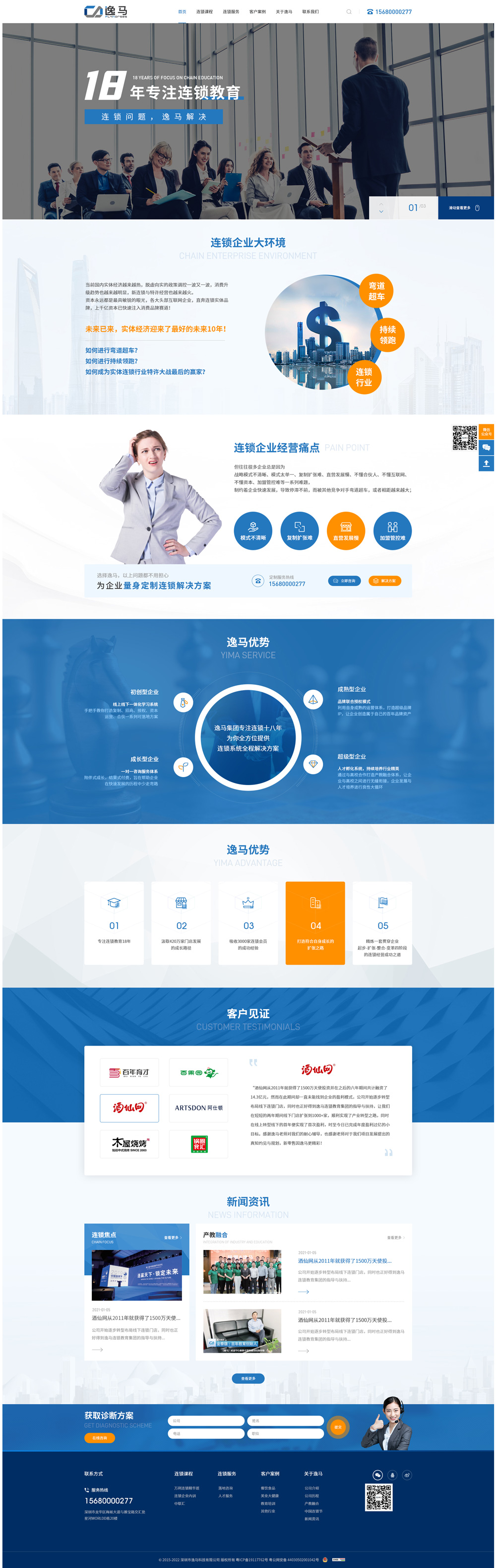逸馬連鎖教育集團(tuán)創(chuàng)立于2004年,集團(tuán)下設(shè)逸馬科技、逸馬品牌連鎖(產(chǎn)教融合)、阿拉丁品牌授權(quán)、逸馬云連鎖、馬幫門店合伙人、快馬特許招商、逸馬投資、學(xué)到連鎖、逸馬歐洲、步步領(lǐng)先等機(jī)構(gòu),是集研究、教育、咨詢、培訓(xùn)、投資于一體的全球領(lǐng)先的連鎖產(chǎn)業(yè)服務(wù)平臺(tái),18年出版連鎖專業(yè)研究書(shū)籍25套,服務(wù)了420萬(wàn)家連鎖門店,6萬(wàn)家連鎖學(xué)員,服務(wù)企業(yè)總營(yíng)收達(dá)到3萬(wàn)億元,為聯(lián)想、蘇寧、創(chuàng)維、怡亞通、三雄極光、雅迪、酒仙網(wǎng)、百果園、木屋燒烤、鴻翔藥業(yè)、鍋圈等近3萬(wàn)家企業(yè)服務(wù)的實(shí)戰(zhàn)經(jīng)驗(yàn),創(chuàng)立了中國(guó)連鎖全程運(yùn)營(yíng)系統(tǒng)的權(quán)威標(biāo)準(zhǔn)及連鎖第三次浪潮的數(shù)字化連鎖大系統(tǒng)。旗下有深圳、上海、北京、成都、武漢、香港、東京、愛(ài)爾蘭等30余家分公司、逸馬連鎖大學(xué)、雙創(chuàng)基地及孵化中心,貼身服務(wù)中聯(lián)匯企業(yè),孵化優(yōu)秀連鎖人才,提供就業(yè)創(chuàng)業(yè)平臺(tái),推動(dòng)連鎖產(chǎn)業(yè)創(chuàng)新升級(jí),構(gòu)建世界級(jí)的全網(wǎng)連鎖產(chǎn)業(yè)生態(tài)圈。