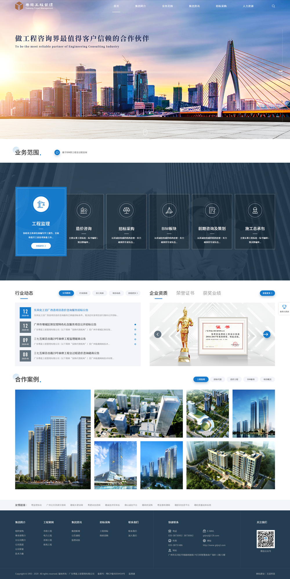 廣東粵能工程管理有限公司原名廣東粵能工程監(jiān)理有限公司,成立于1993年,是一家集工程監(jiān)理、工程造價(jià)咨詢、工程招標(biāo)代理、政府采購代理、工程咨詢、建筑工程施工總承包為一體的專業(yè)工程管理咨詢公司,目前具有房屋建筑工程、市政公用工程、電力工程三項(xiàng)甲級監(jiān)理資質(zhì)和環(huán)境監(jiān)理甲級、人防監(jiān)理乙級以及工程招標(biāo)代理甲級資質(zhì)、工程造價(jià)咨詢甲級資質(zhì)、財(cái)政部政府采購代理機(jī)構(gòu)甲級資質(zhì)、工程咨詢(投資)乙級資質(zhì),國稅、地稅聯(lián)合評為A級信用等級,中國企業(yè)信用等級AAA級認(rèn)證,2019年通過高新技術(shù)企業(yè)認(rèn)定,連續(xù)十六年被評為廣東省“重合同守信用”企業(yè)。公司現(xiàn)有員工600人,各類注冊工程師超過200人次,工程師以上職稱人員超過300人。