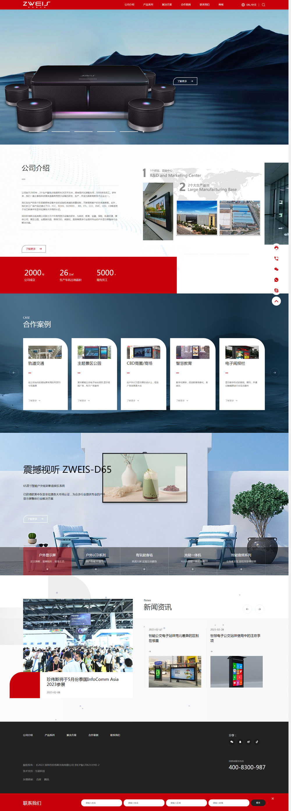 深圳珍偉斯光電有限公司致力于戶外商用顯示設(shè)備的研發(fā),為政府、教育、金融、保險(xiǎn)、軌道交通、媒體公司、景區(qū)公園、主題游樂(lè)園、商場(chǎng)CBD、閱報(bào)欄、醫(yī)院等更多行業(yè)提供專業(yè)的戶外顯示屏整體行業(yè)解決方案。